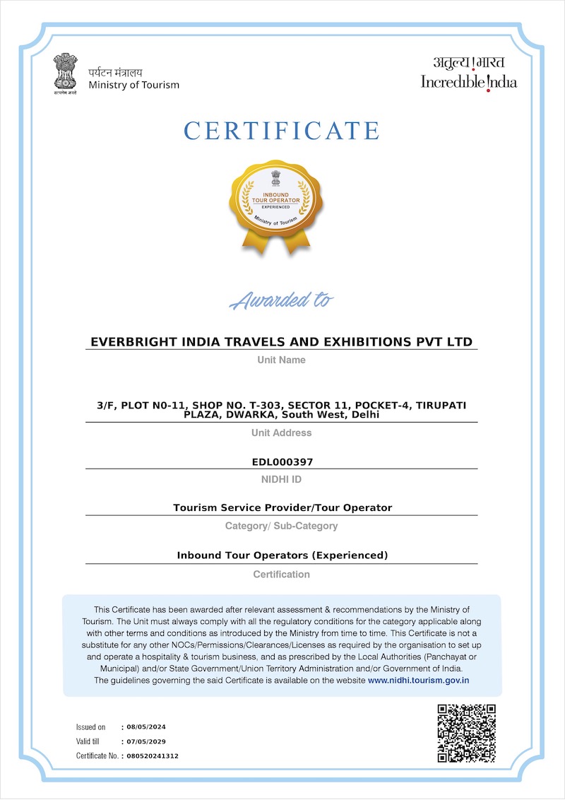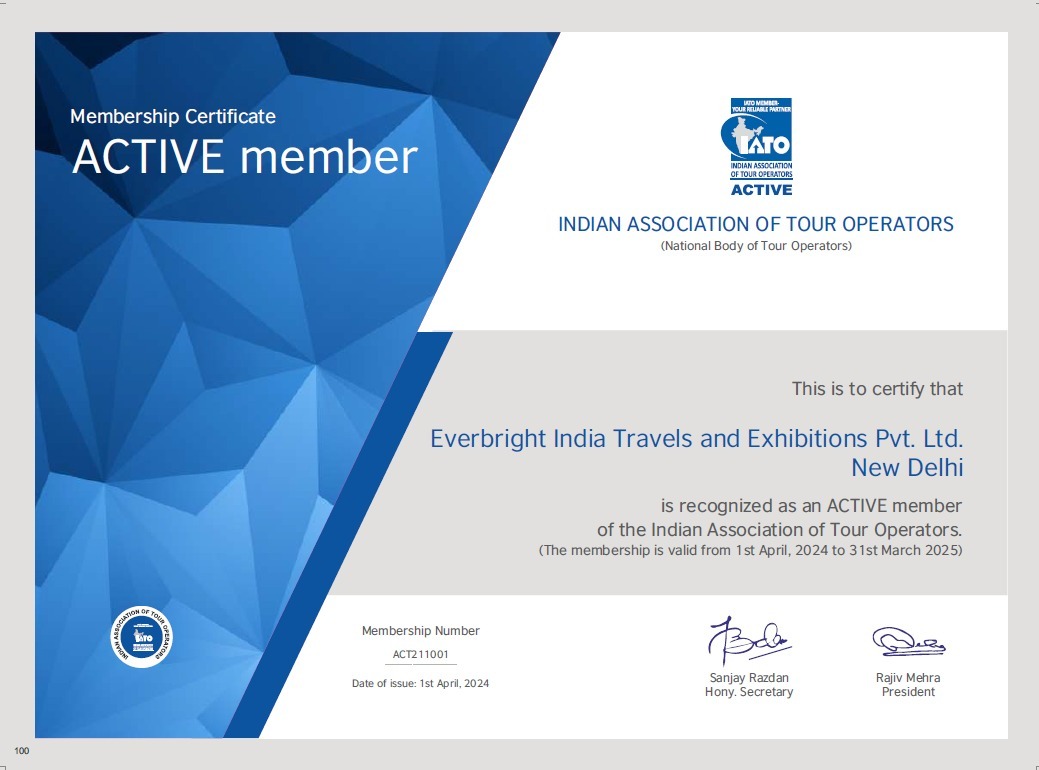 Everbright India is proud to be associated with some of the most esteemed organisations which govern the travel and tourism industry in India like ministry of tourism, Indian association of tour operators, Services export promotion council, IRCTC to name a few.